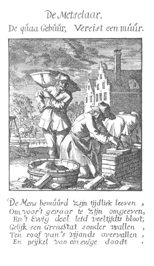 Metselaar. Etching by Jan and Caspar Luyken, circa 1690. Image credit: Geneaknowhow