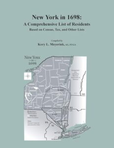 Meyerink, Kory L. New York in 1698: A Comprehensive List of Residents, Based on Census, Tax, and Other Lists. Baltimore, Maryland: Genealogical Publishing, 2024.