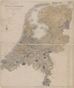 This week we are looking at a thematic map from 1887. It shows the percentage of children between the ages of 6 and 12 who were not in primary school. The statistics were shown per municipality. The darkest blue color represents areas where more than 30% of children did not go to school. A zoomable version is available at Gallica. The map shows great differences between parts of the Netherlands. In general, municipalities in the north had higher school attendance than municipalities in … [Read more...]
